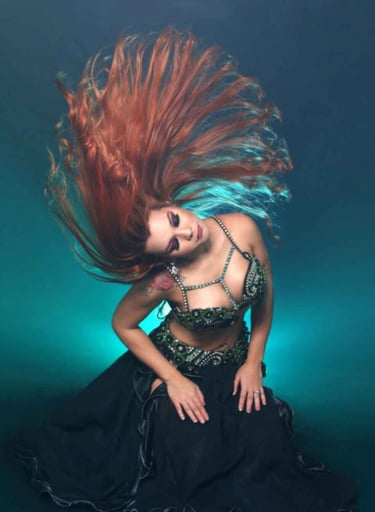 Shadya, além de bailarina e terapeuta, conduz aulas de Dança do Ventre e Dançaterapia, integrando a expressão corporal e artística como caminhos para o autoconhecimento e a reconstrução da relação com o próprio corpo.